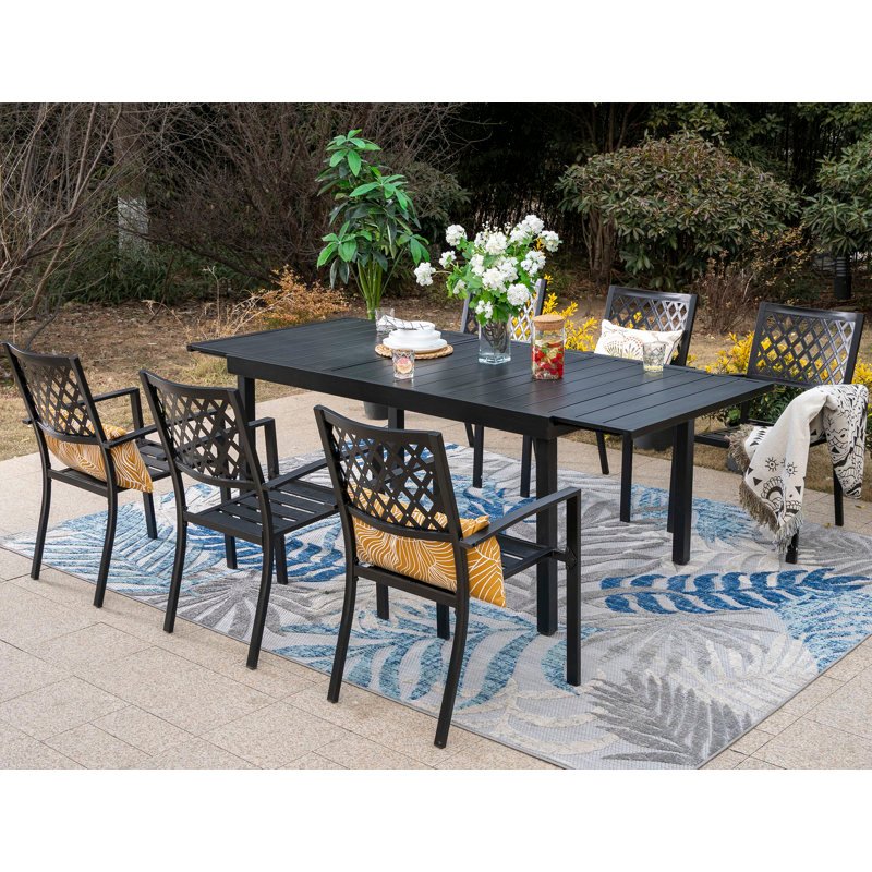 Not only a perfect addition to the outdoor garden lawn but also suitable for indoor kitchen or living room. 6-8 person extendable table design allows you to change it freely according to your needs. Stackable chair to save your space and the hollow-out design of back and seat ensure it dry quickly when wet.